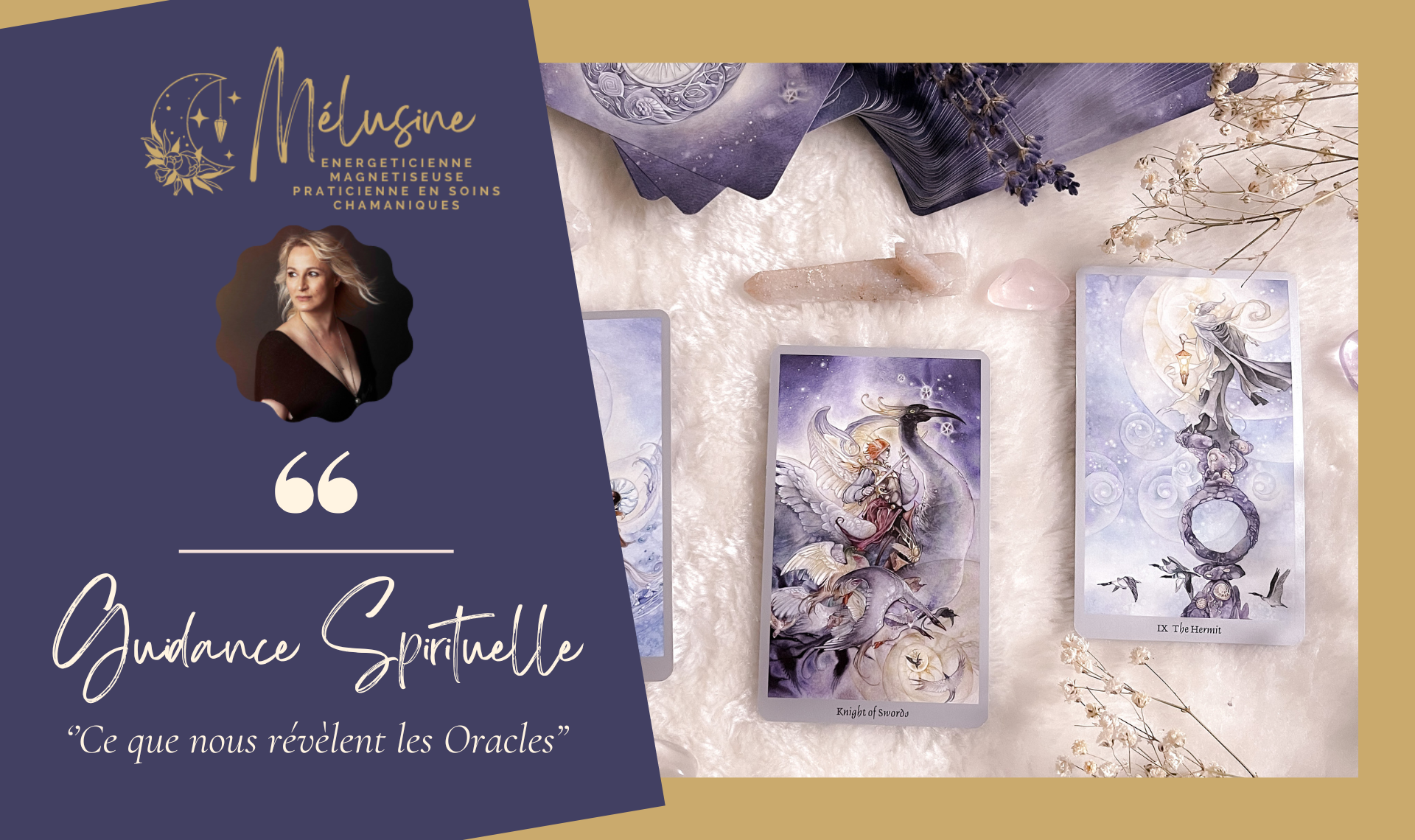 Pour mes guidances j'utilise le plus souvent la Triade, les Miroirs mais aussi l'Oracle des femmes médecines, du Tambour, l'Oracle de Lumière, d'Isis et l'arbre de vie. Les Runes et les Oghams.